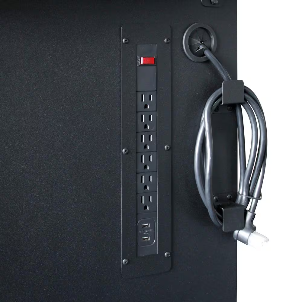- Built-in power strip w/ 6 outlets and 2 USB for easy charging